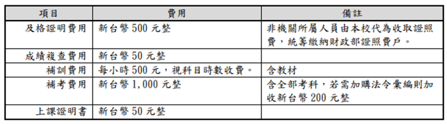 - 課程費用:新台幣8,000元整(不含郵資、及格證明費用)