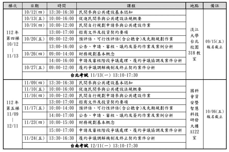 112年促進民間參與公共建設專業人員訓練