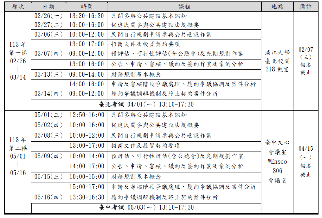 第二梯次 <臺中場> 113年05月01日~113年05月16日