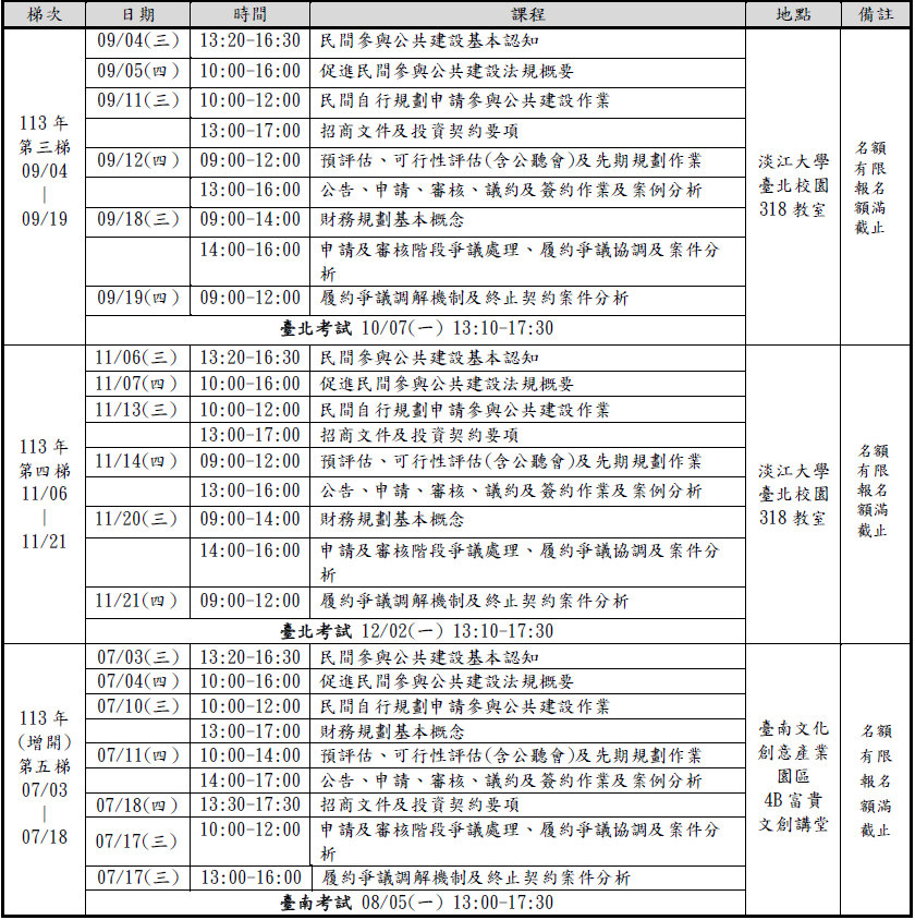 第三梯次 <臺北場> 113年09月04日~113年09月19日